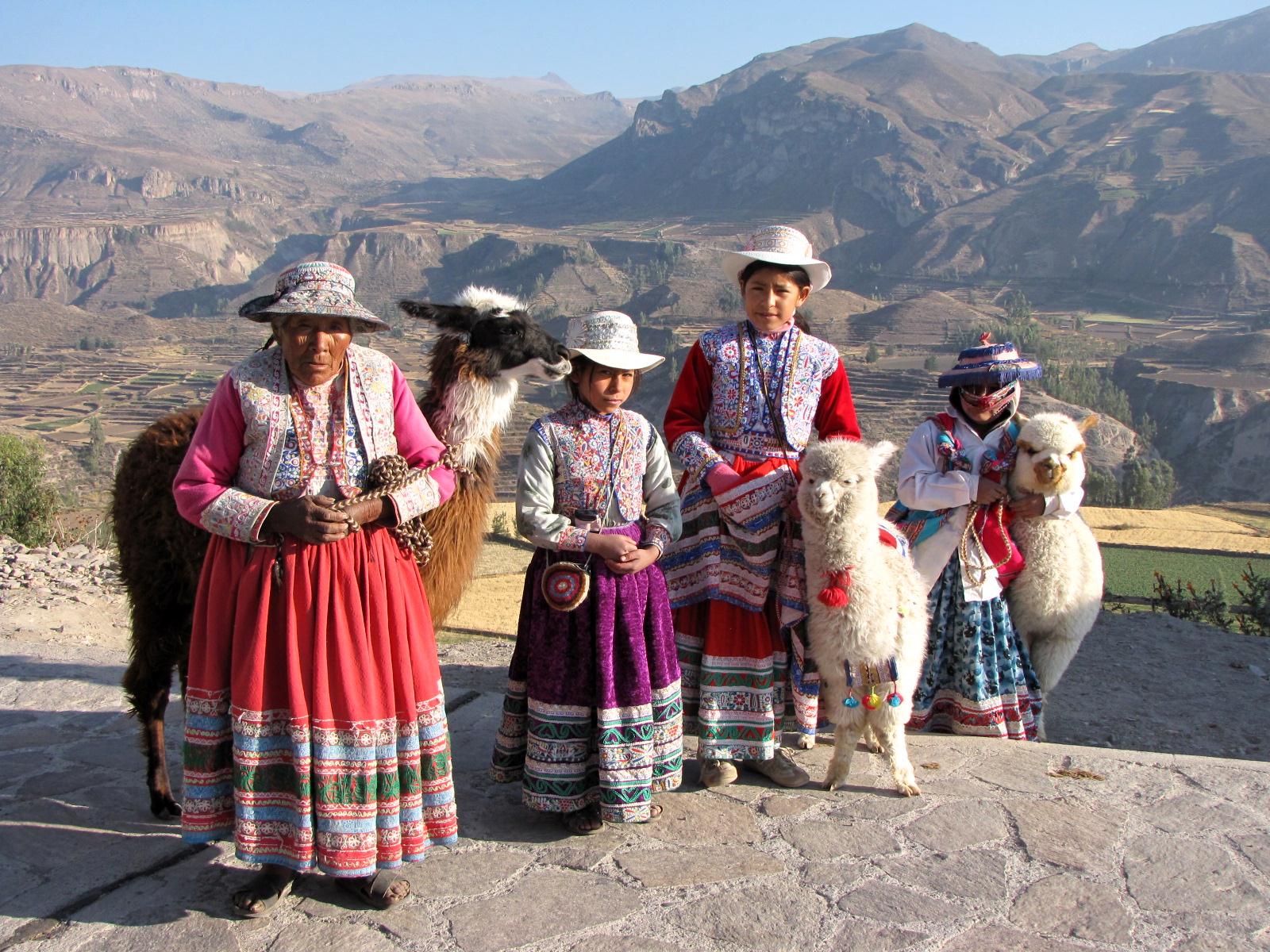 ILlamas, bright traditional clothing made of colourful woven materials - ancient Inca traditions are everywhere.
