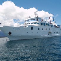 La Pinta is a luxurious 63 metre (207 ft) yacht, designed to provide the ultimate sophisticated Galapagos travel experience. Accommodating 48 guests in 24 spacious cabins, the ship offers discovery, adventure, environmental interpretation, aquatic activities, relaxation, superb service and great dining. Aquatic activities include snorkelling, kayaking and a glass-bottom boat. Naturalist guides enhance their interpretative skills with the use of state-of-the-art-expedition equipment.
